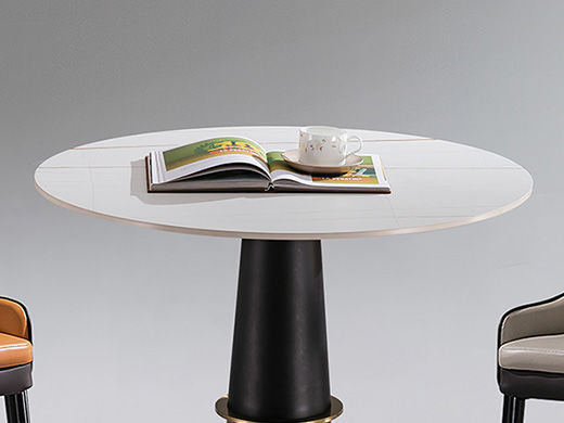 甄品家具 现代简约 桌面:岩板+底板脚架:黑砂碳素钢 0.6米洽谈桌