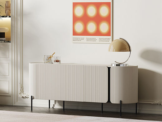 鹿屿 奶油风 灰白色烤漆(环保中纤板E1板)+不锈钢黑钛金属脚 1.8米餐边柜