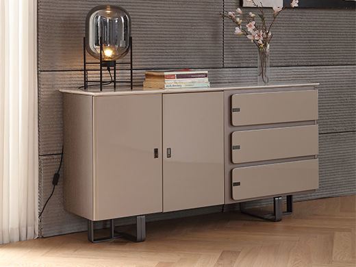 梵歌 现代简约 E1环保中纤板 三节滑珠导轨 细纹橡木皮 高密度三胺板抽屉+三节缓冲导轨 人造大理石 碳素钢五金脚 浅卡其 餐边柜