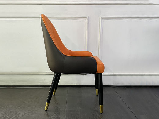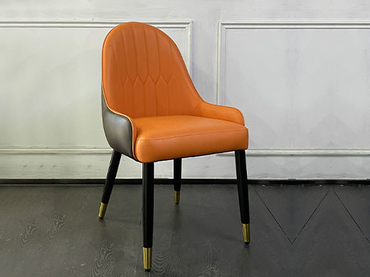 非凡工艺 现代简约 西皮+橡胶木+铜套 亮橙色 餐椅1把
