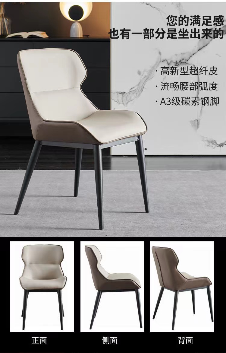 非凡工艺 现代简约 西皮+黑砂 前浅灰后褐色 餐椅1把¥541