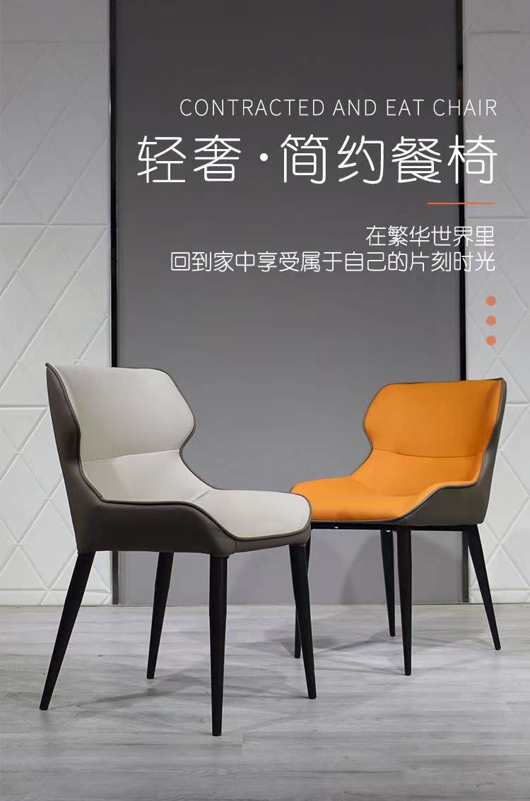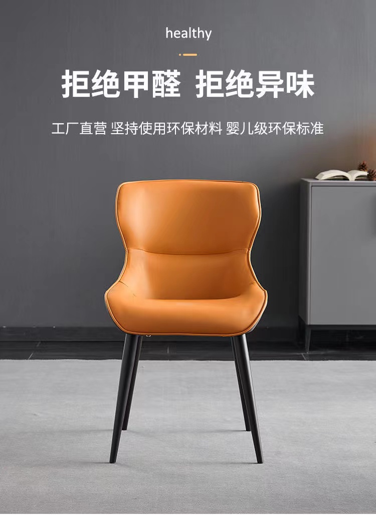 非凡工艺 现代简约 西皮+黑砂 橙色 餐椅1把