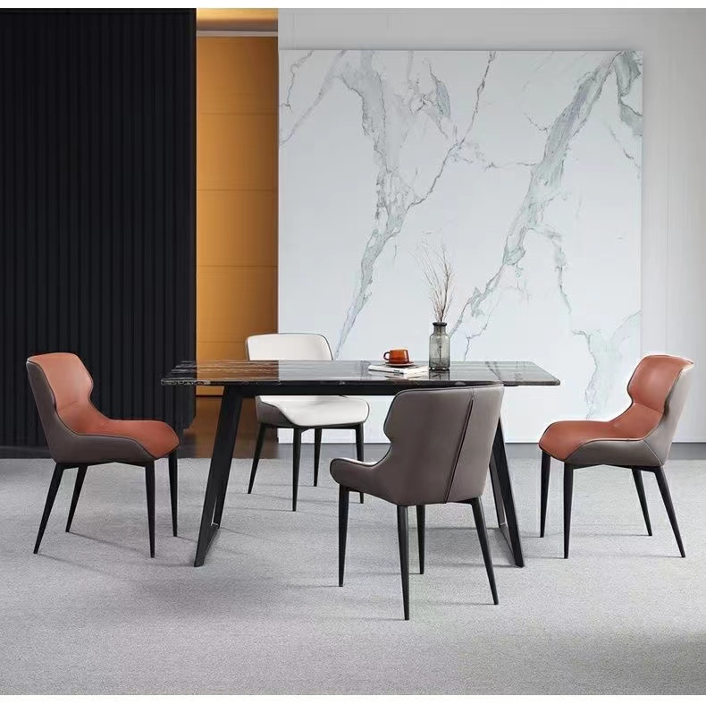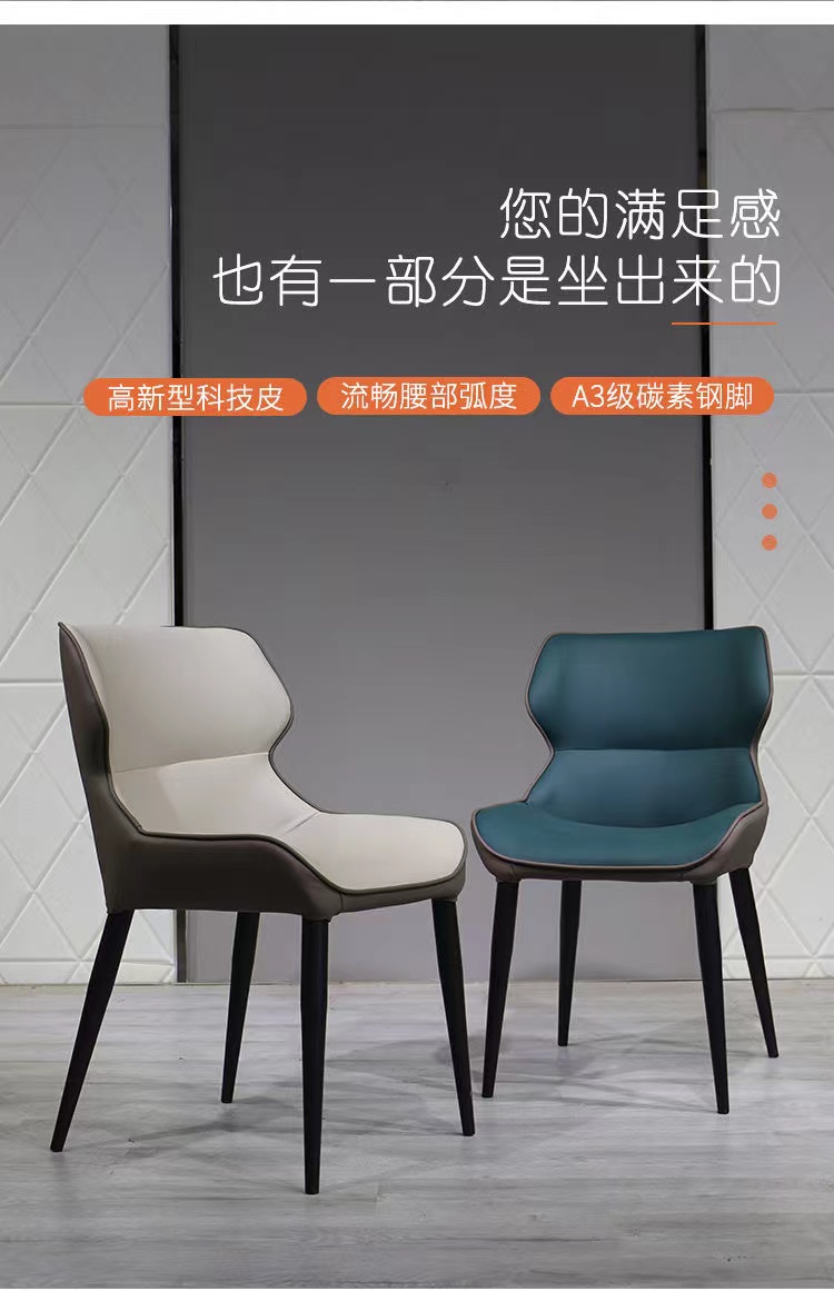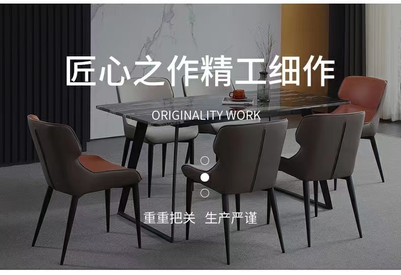 非凡工艺 现代简约简约 碳素钢+肤感皮 棕色 餐椅1把