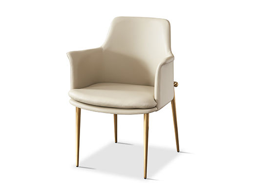 拜洛迪 轻奢 超迁皮+拉丝香槟金不锈钢 米灰色 1把餐椅