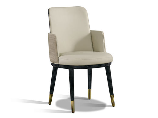 拜洛迪 轻奢 超迁皮+实木脚 咖色+米色 1把餐椅