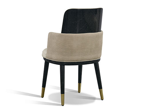 拜洛迪 轻奢 仿真皮+实木弯板贴木纹 黑条米色 1把餐椅