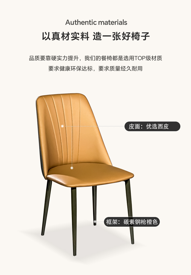 【套餐专享价】每屋优享系列 现代简约 碳素钢+马鞍皮 橙色 餐椅1把