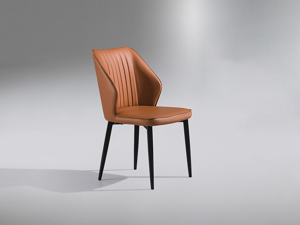 甄品家具 现代简约 碳素钢黑砂+西皮 橙色 餐椅1把