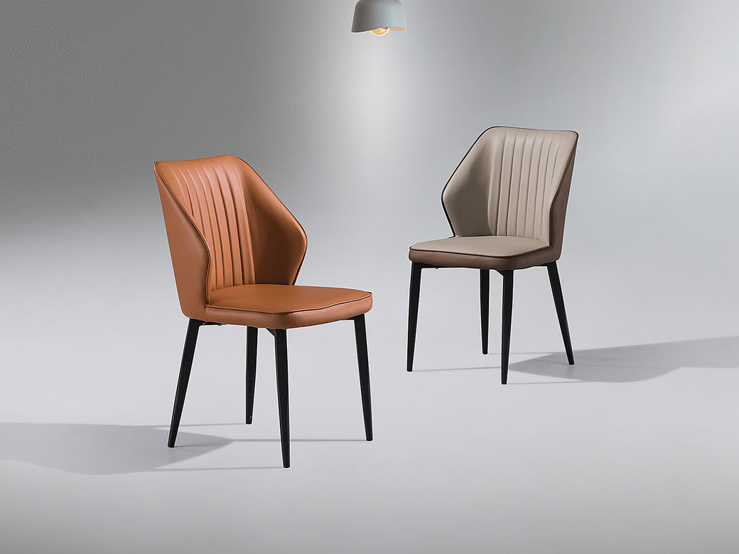 甄品家具 现代简约 黑砂碳素钢+西皮 前灰后咖 餐椅1把¥583