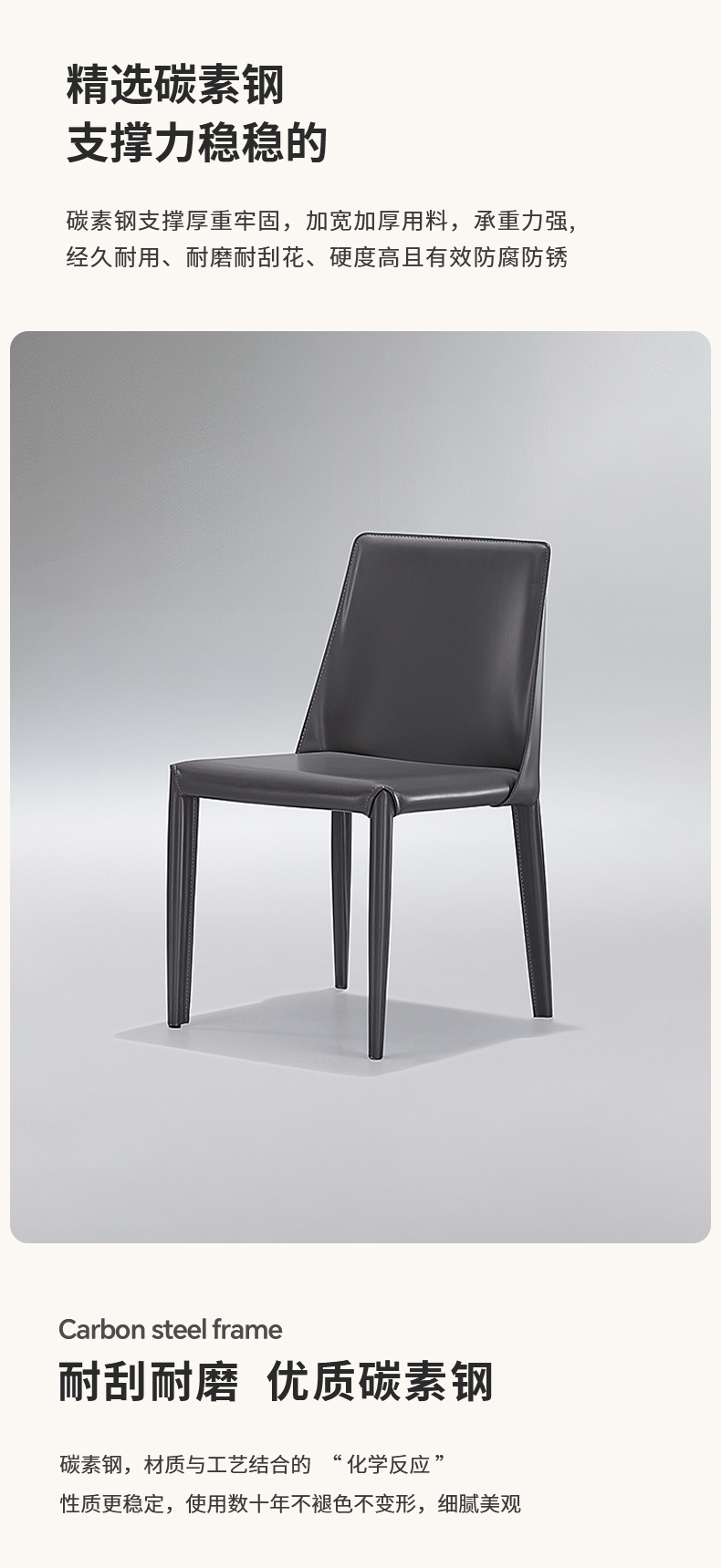 【套餐专享价】每屋优享系列 现代简约 碳素钢黑砂+西皮 米色 餐椅1把
