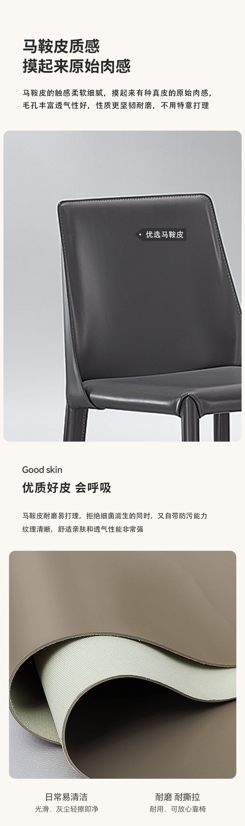 【套餐专享价】每屋优享系列 现代简约 碳素钢+马鞍皮 灰色 餐椅1把