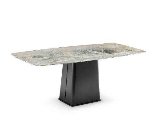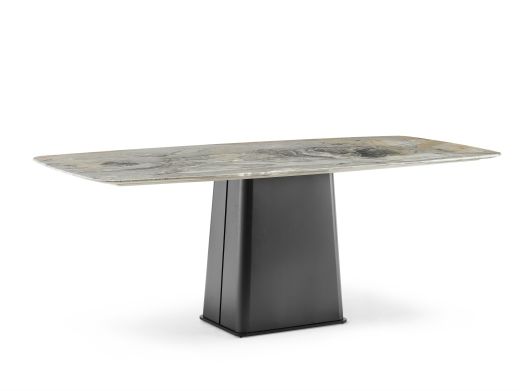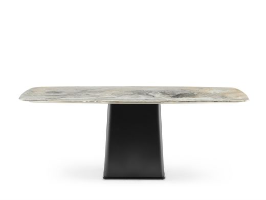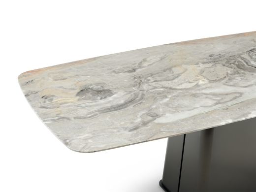 Milos米洛斯 极简 天然大理石面 不锈钢黑拉丝底座 1.8米餐桌