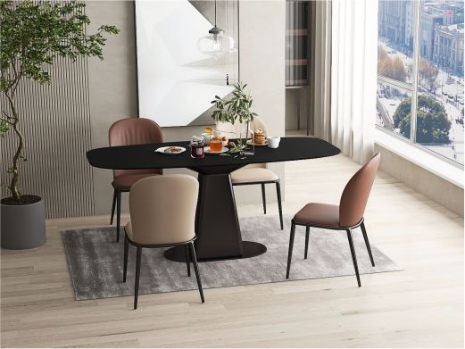 Milos米洛斯 极简 天然大理石面 不锈钢黑拉丝底座 1.8米餐桌¥13668