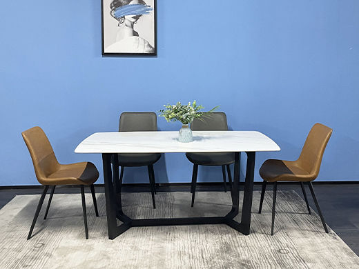 A系优选 现代简约 餐桌:碳素钢+岩板 1.4米 餐椅:骨架:五金材质 1.4米餐桌+4把餐椅 (含底板)¥1911