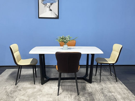 A系优选 现代简约 餐桌:岩板+碳素钢 1.4米 餐椅:西皮+墨兰紫 4把橙色 1.4米餐桌+4把餐椅 (含底板)¥3402