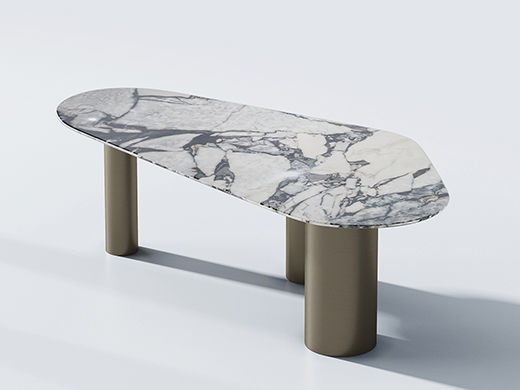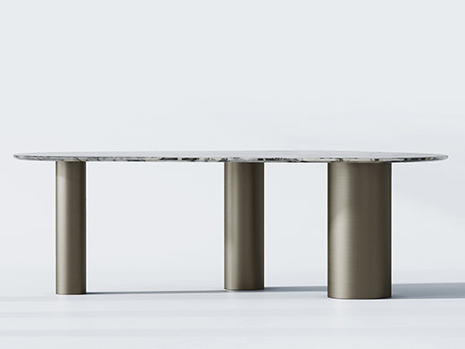 鹿屿 极简轻奢 天然石大象白+拉丝香港金 2.4米餐桌