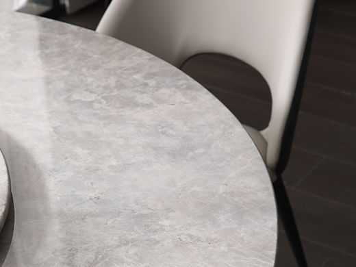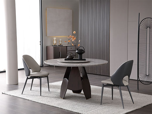 拉斐尔 轻奢 木纹木皮+多层实木板+电镀不锈钢+钢琴烤漆+岩板 1.35米餐桌(含转盘)