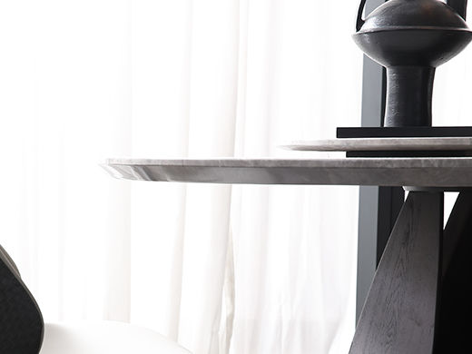 梵歌 现代简约 E1环保中纤板 环保水性漆 烟熏木皮 高密度三胺板抽屉+三节缓冲导轨 抽面3MM岩板+15MM人造大理石面 碳素钢五金脚 烟熏色 1.35米圆餐桌 |