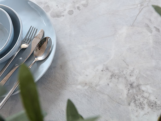 梵歌 现代简约 E1环保中纤板+环保水性漆 6MM岩板 哑光大花白 碳素钢五金脚 浅灰 1.35米餐桌