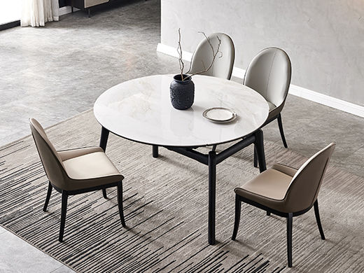 非凡工艺 现代简约 岩板+碳素钢 雪山石 伸缩 折叠 功能圆形1.35米餐桌¥2113