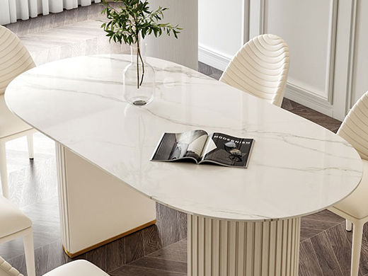 拜洛迪 轻奢 碳素钢酒杯造型底座+岩板面 白色 1.35米圆形餐桌¥7712