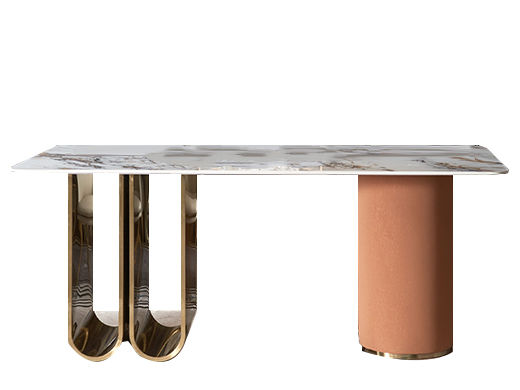 拜洛迪 轻奢 拉丝香槟金不锈钢+岩板面 粉色+白色 1.8米餐桌