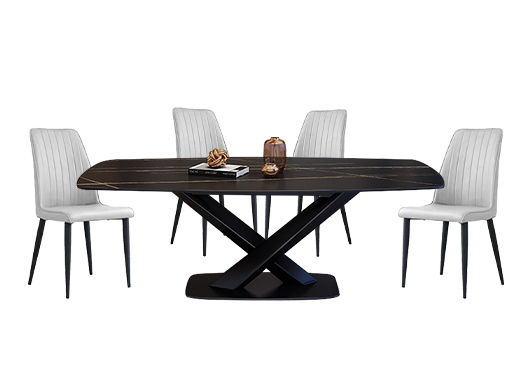 A系优选 现代简约 餐桌:碳素钢+岩板 1.4米 餐椅:骨架:五金材质 1.4米餐桌+4把餐椅 (含底板)¥1911