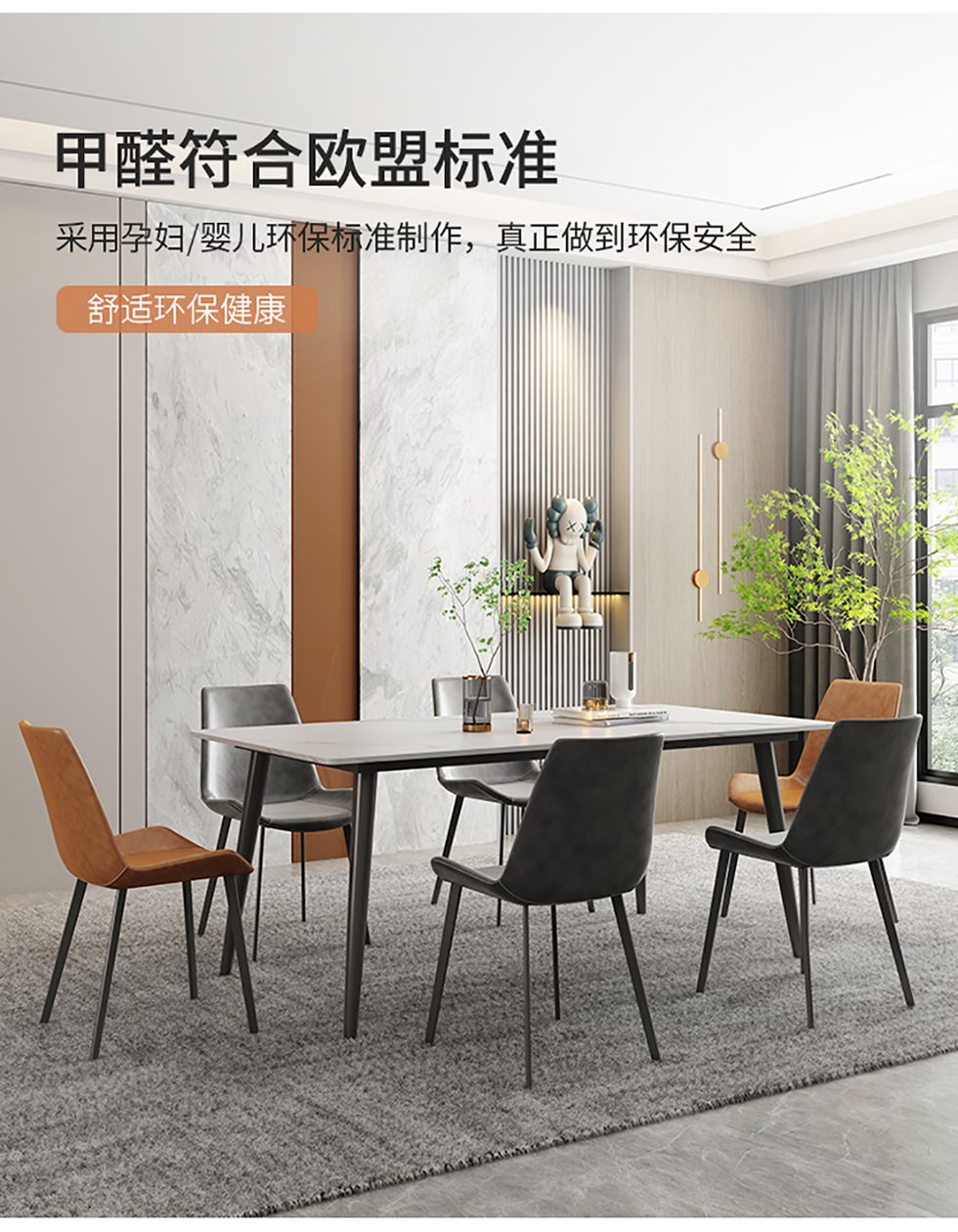 A系优选 现代简约 餐桌:碳素钢架+哑光岩板面+底板餐椅:碳素钢+西皮+高密度海绵 1.4米餐桌+4椅 (含底板)¥3402
