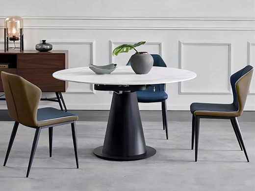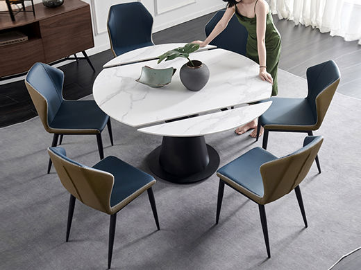 B系优选 现代简约 餐桌:碳素钢+岩板 餐椅:西皮+骨架:五金材质(桌架黑砂色) 1.35米餐桌+4把餐椅(不含底板) |
