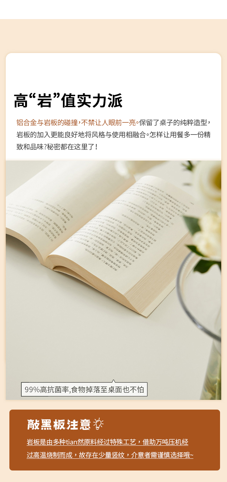 B系优选 奶油风 铝合金材质餐桌+岩板面 1.4米餐桌(不含底板)