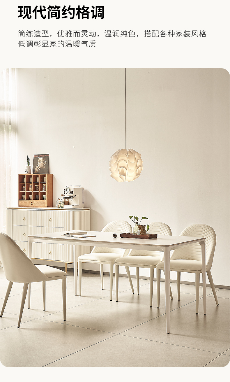 云端 奶油风 碳素钢奶白色 实木多层板底板 12mm岩板面 奶白色 1.8米餐桌¥2304