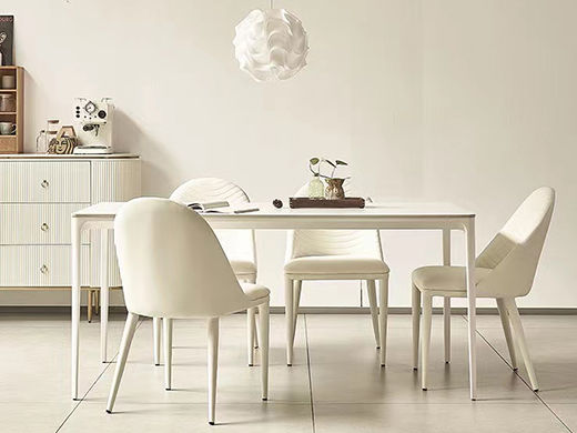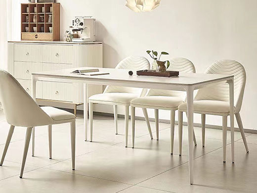 B系优选 奶油风 碳素钢底架+亮光/哑光 岩板面 1.4米餐桌+4把餐椅(含底板)¥1842