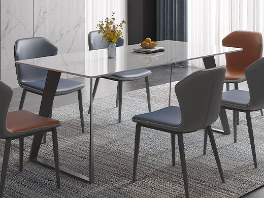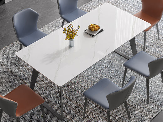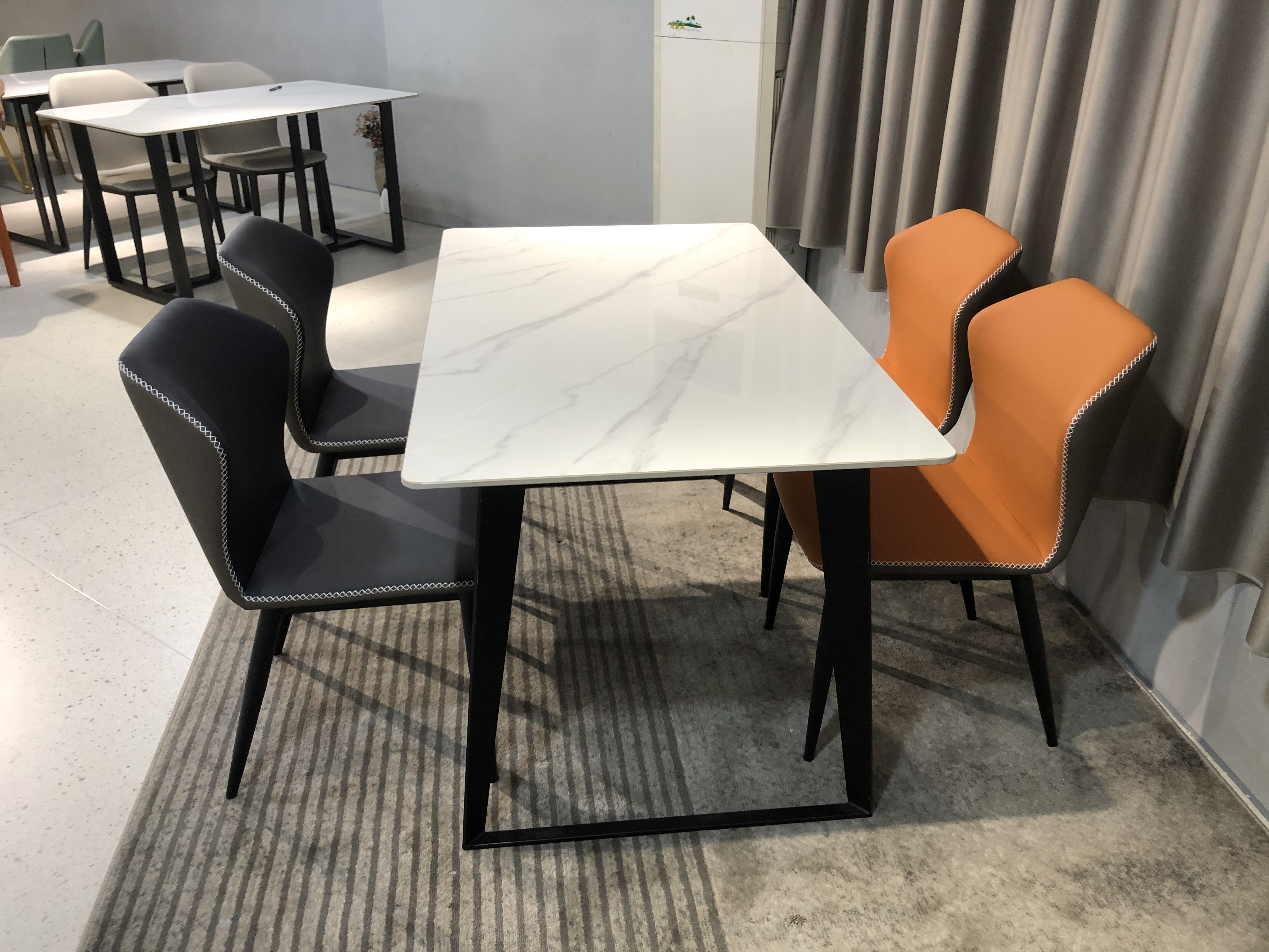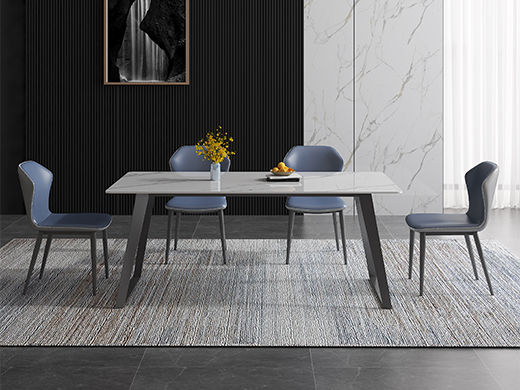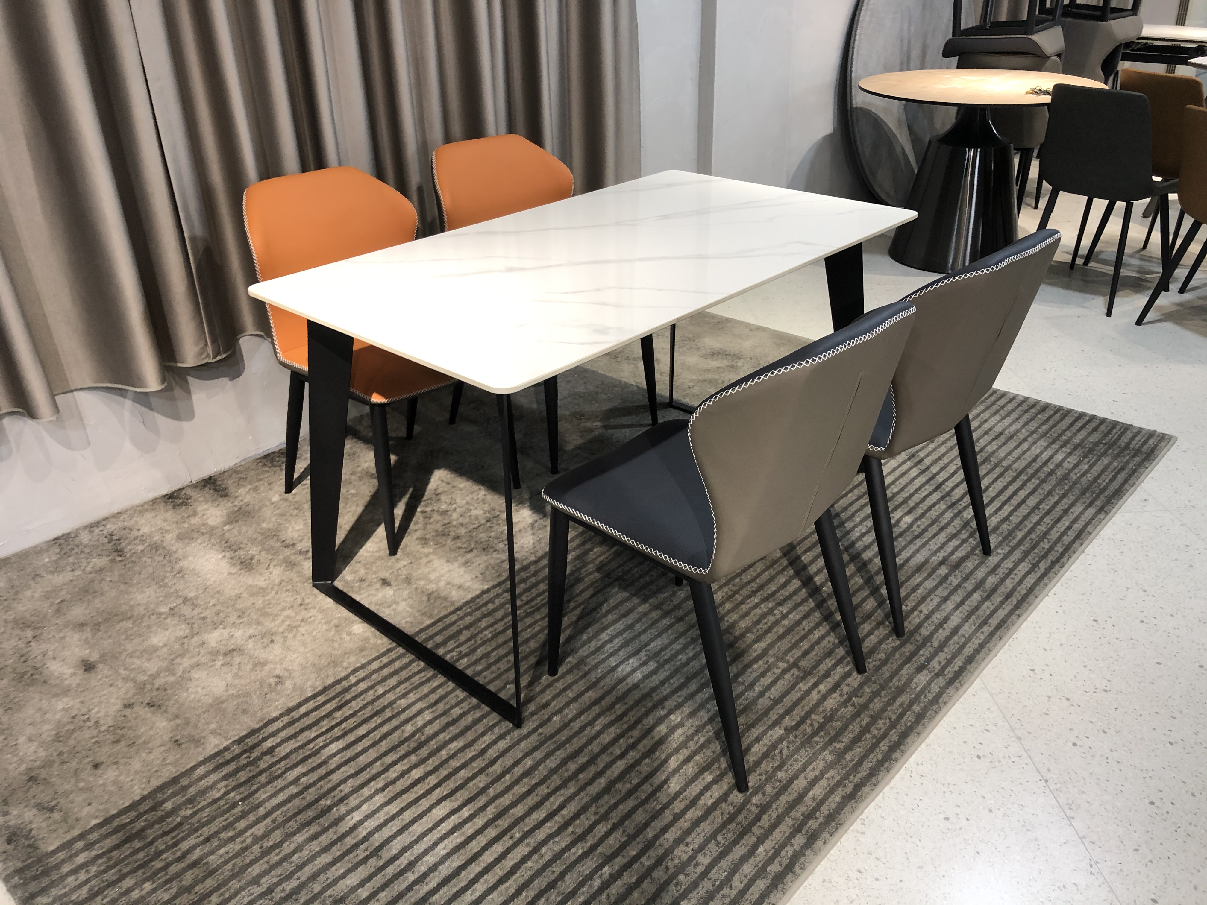 A系优选 现代简约 餐桌:岩板+碳素钢脚架 餐椅:碳素钢脚架+PU皮 1.4米餐桌+4把餐椅 (含底板)