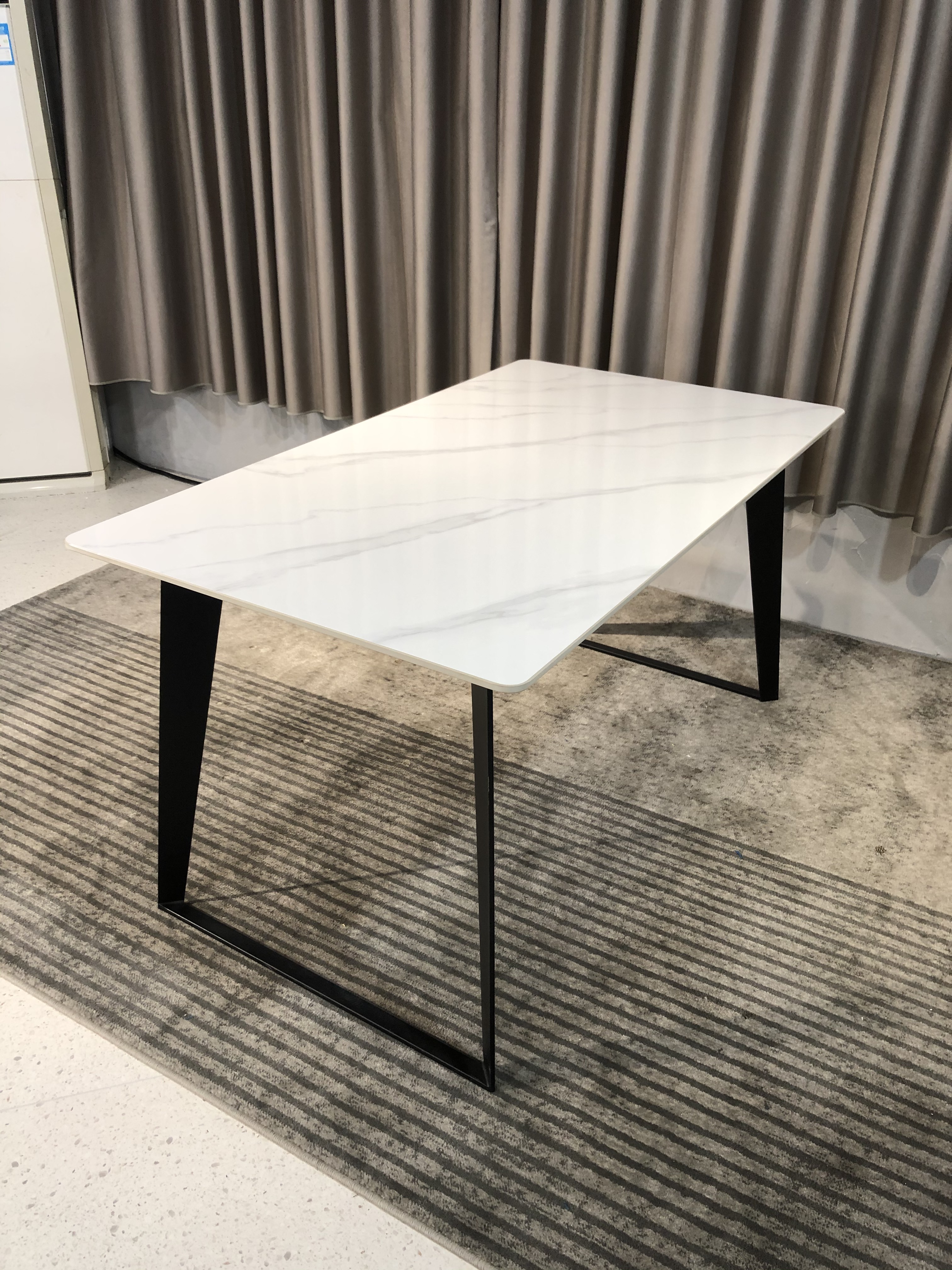 A系优选 现代简约 碳素钢五金脚+12mm亮光雪山石岩板1.4米餐桌+4把餐椅 (含底板)¥3402
