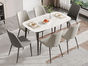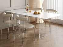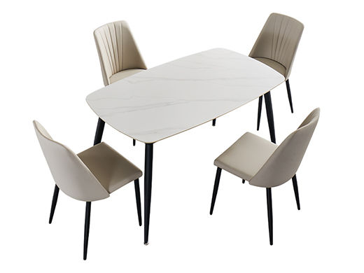 B系优选 现代简约 餐桌:12mm亮光奶油色岩板面+高密度板+烤漆+不锈钢脚 餐椅:铁艺框架+西皮靠背 1.4米餐桌+4把餐椅(含底板)¥2330