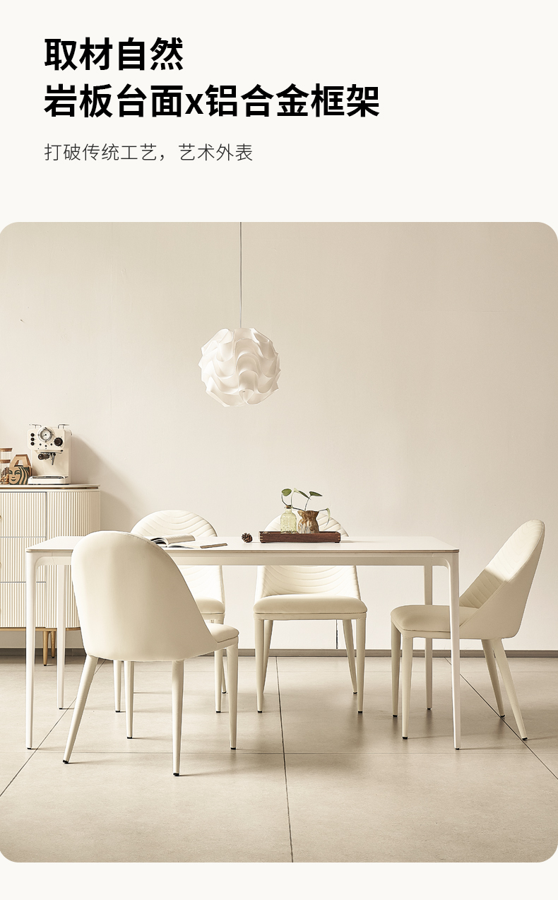 B系优选 奶油风 铝合金材质餐桌+岩板面 1.4米餐桌+4把餐椅(不含底板)¥4008
