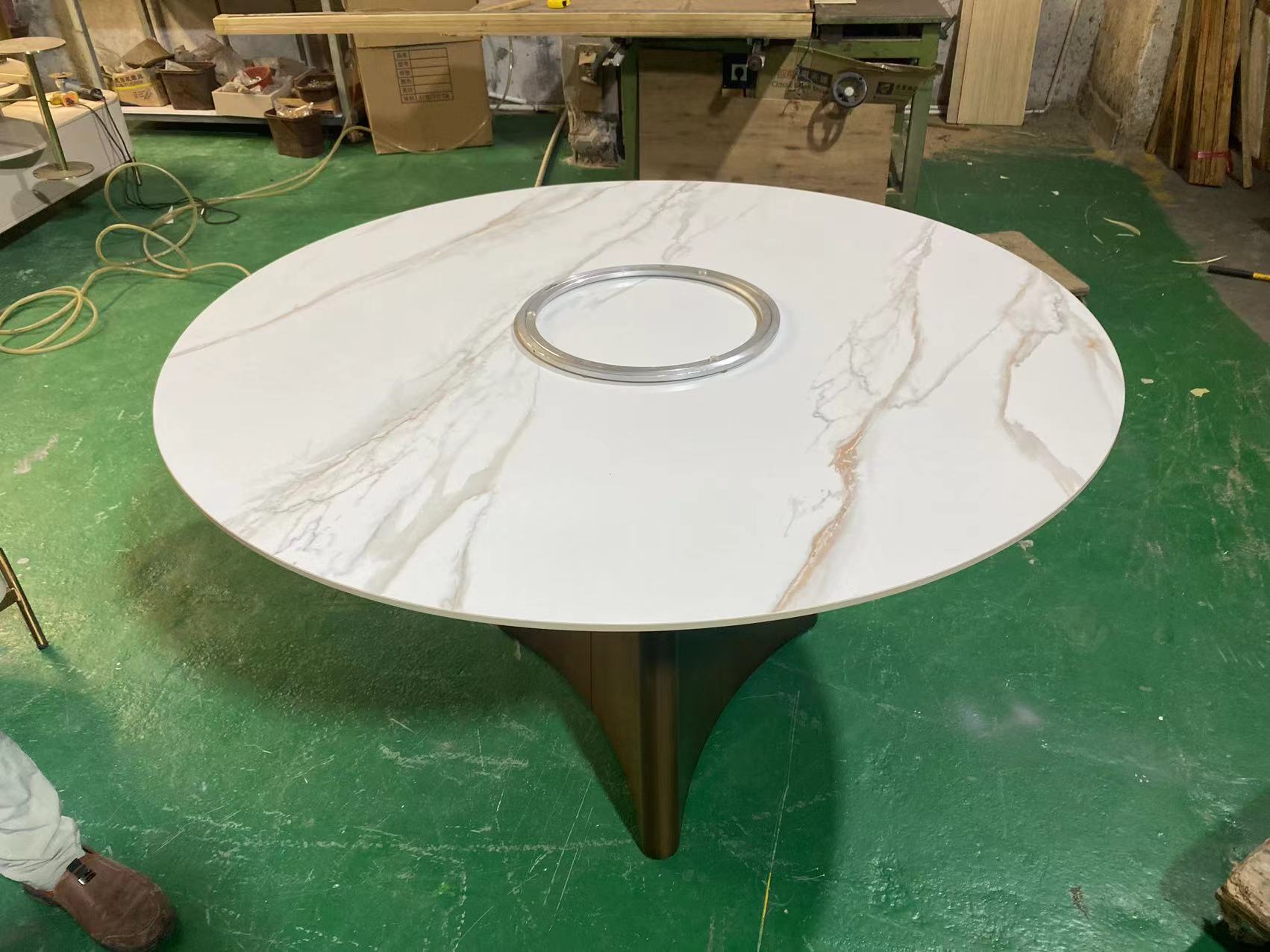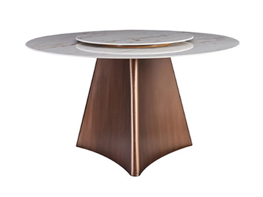 拉斐尔 轻奢 电镀不锈钢五金+岩板 1.36米餐桌(含转盘)