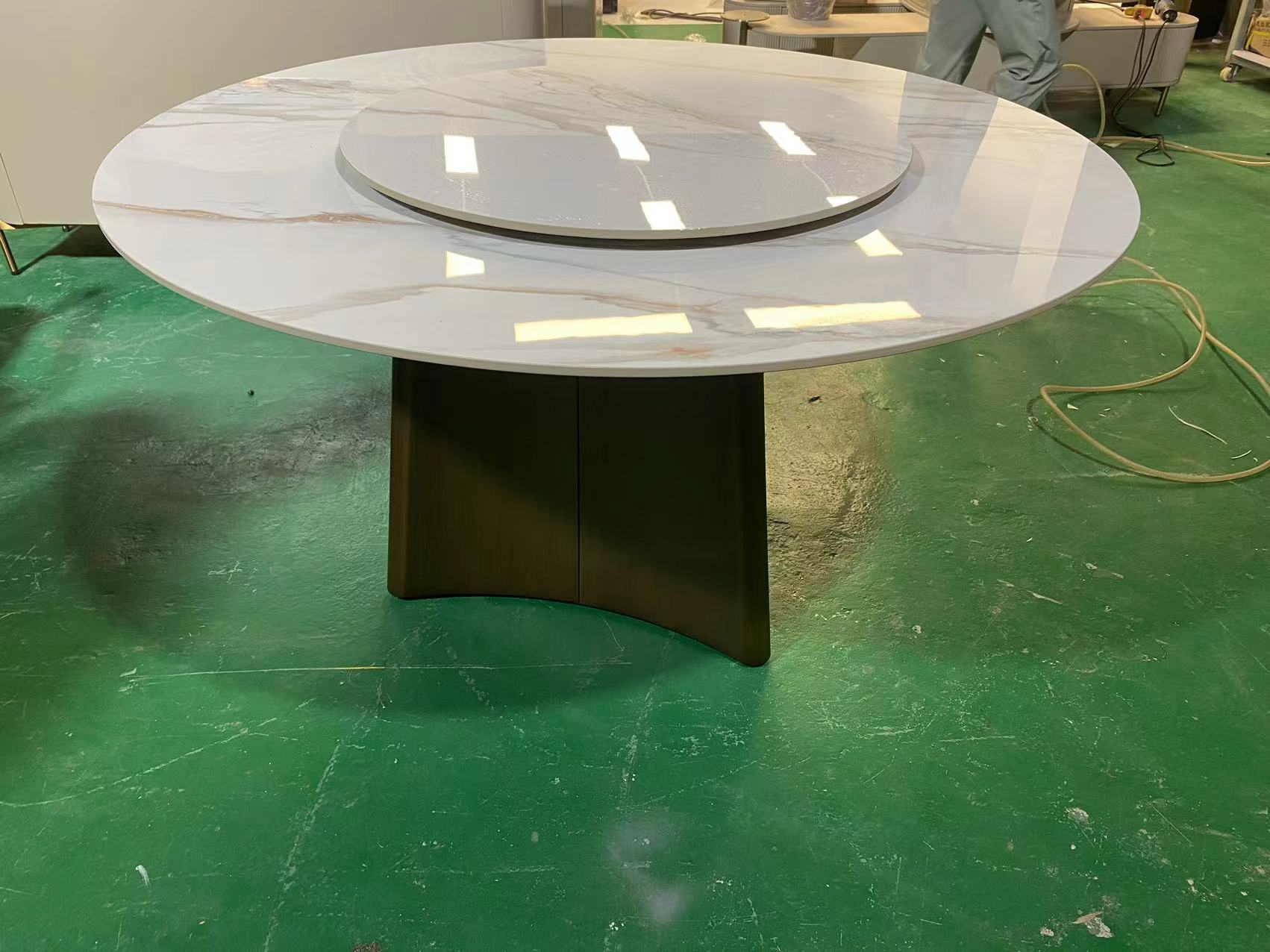 拉斐尔 轻奢 木纹木皮+多层实木板+电镀不锈钢+钢琴烤漆+岩板 1.35米餐桌(含转盘)