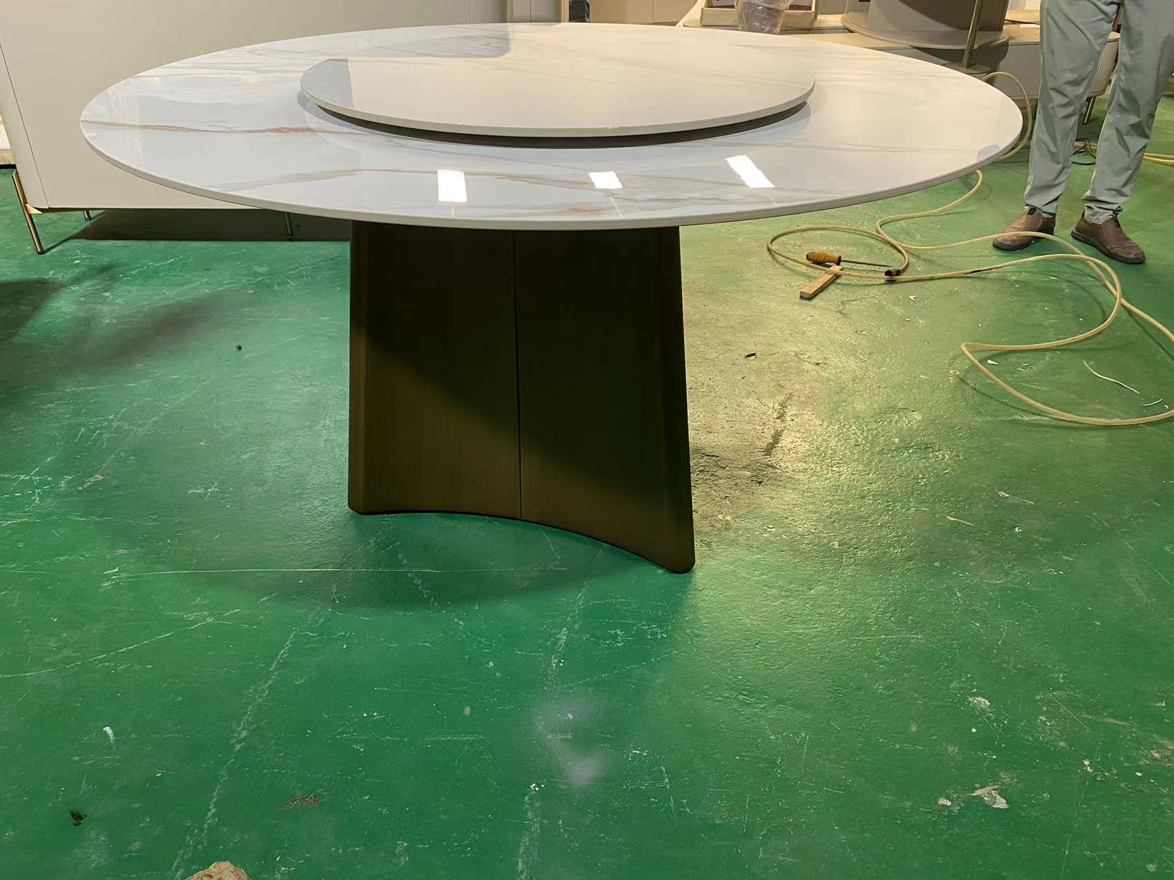 小红书系列 轻奢 桌面:岩板+底板脚架:不锈钢水波纹【配转盘】 1.35米餐桌¥4857