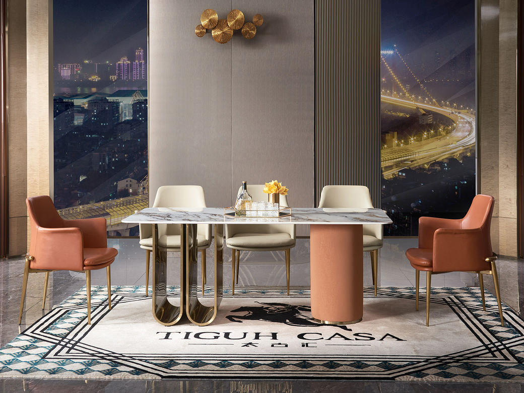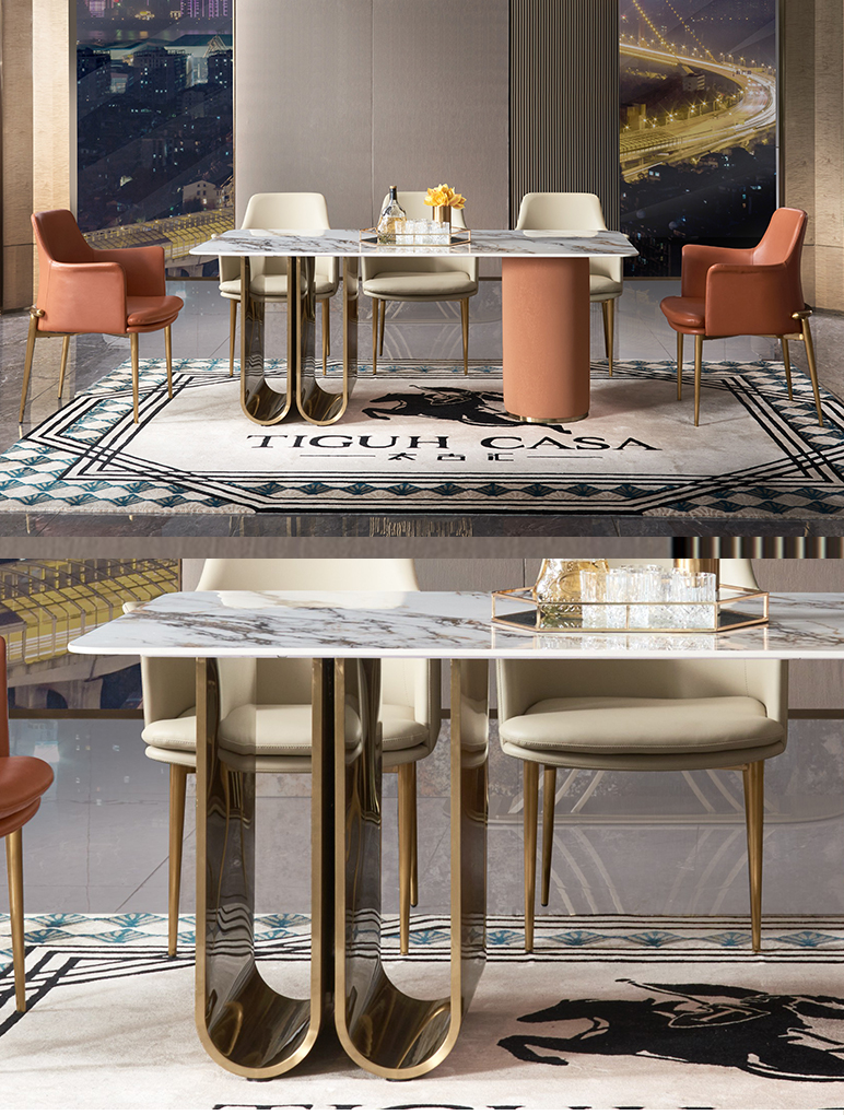 拉斐尔 轻奢 岩板+电镀不锈钢五金 1.6米餐桌