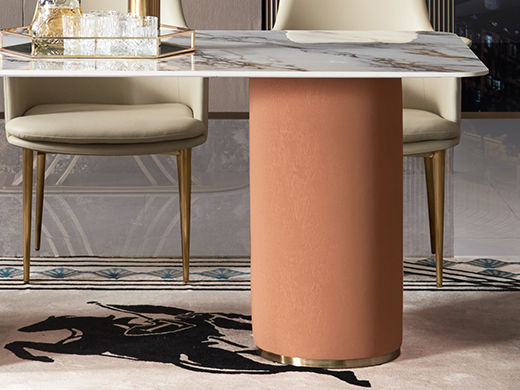 拉斐尔 轻奢 电镀不锈钢五金+岩板+多层实木板+布艺 1.6米餐桌