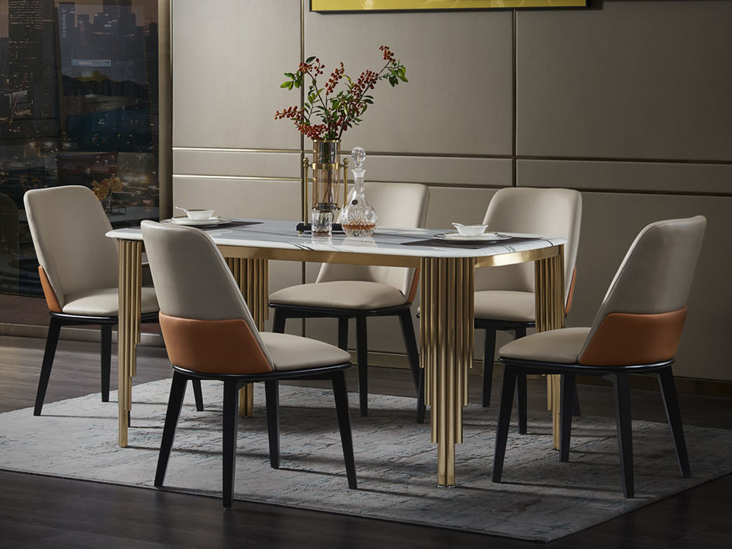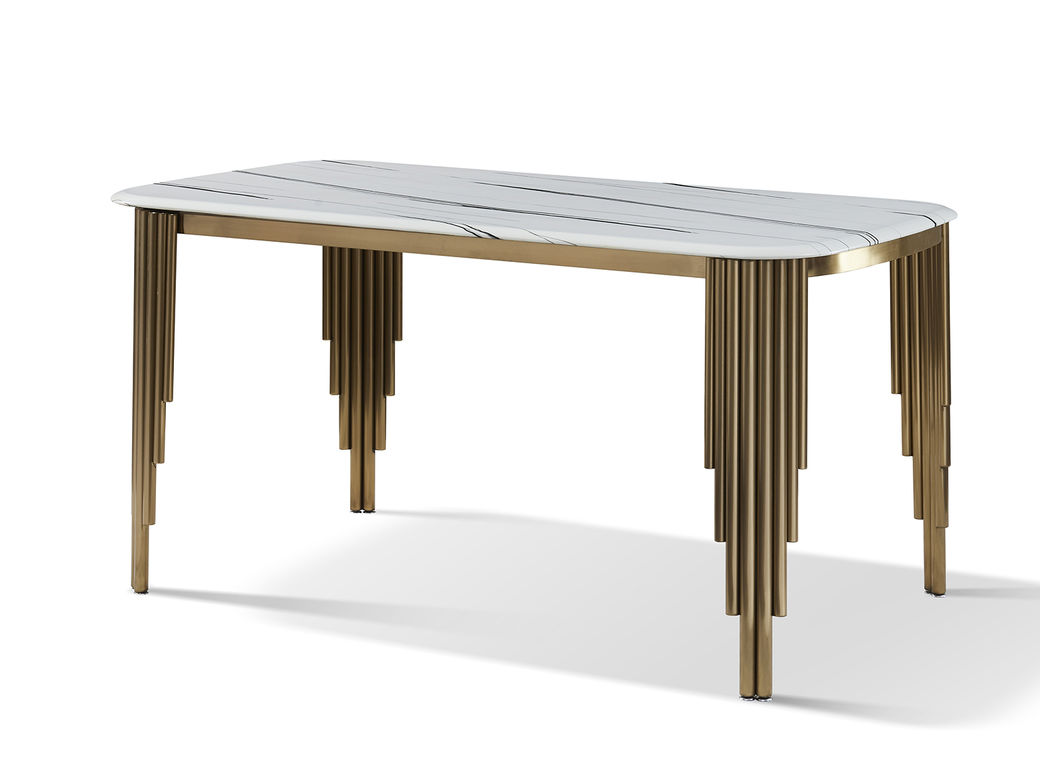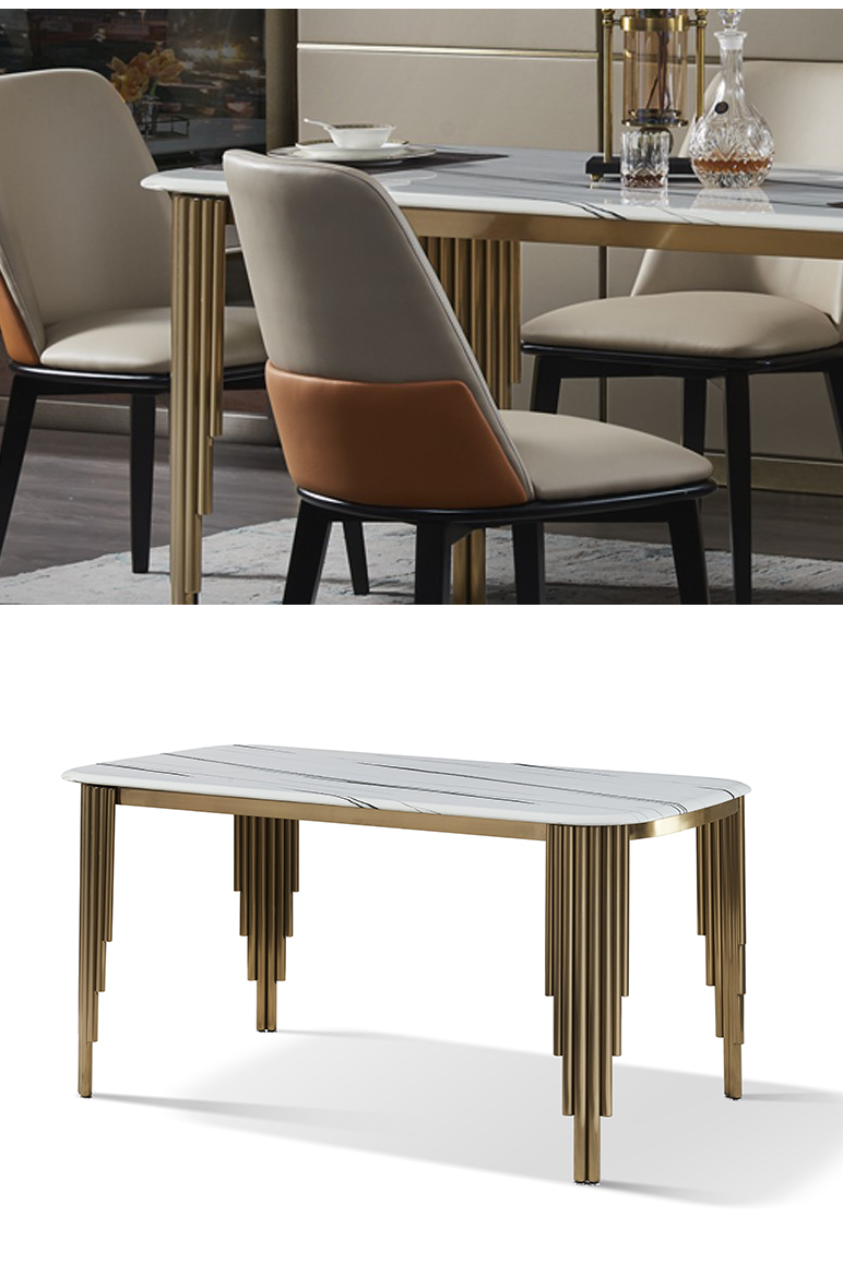 拉斐尔 轻奢 岩板+电镀不锈钢五金 1.6米餐桌