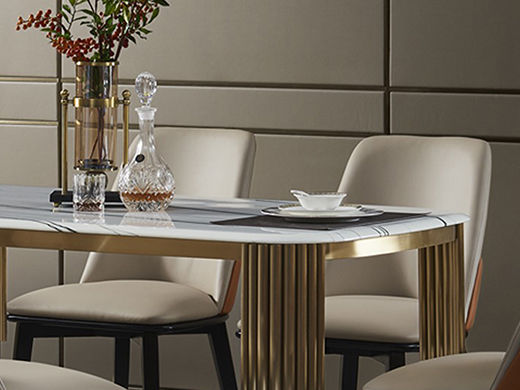 拉斐尔 轻奢 电镀不锈钢五金+天然大理石 1.4米餐桌