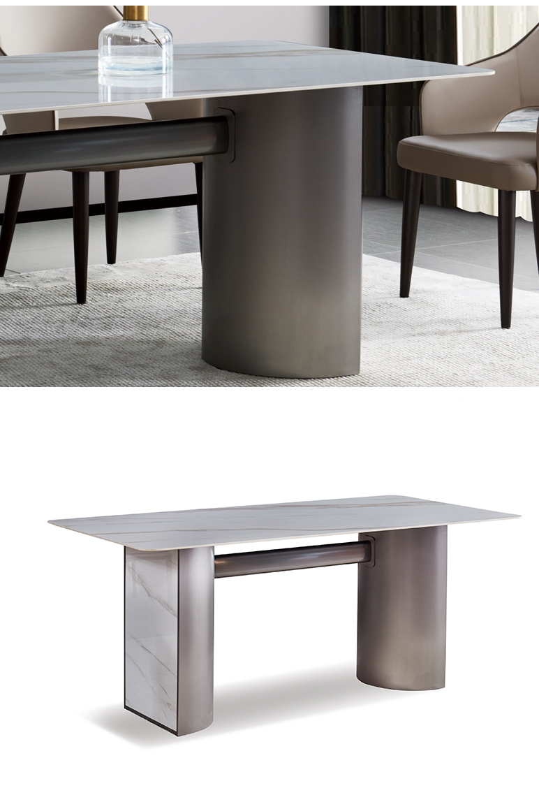 拉斐尔 轻奢 岩板+电镀不锈钢五金 1.6米餐桌