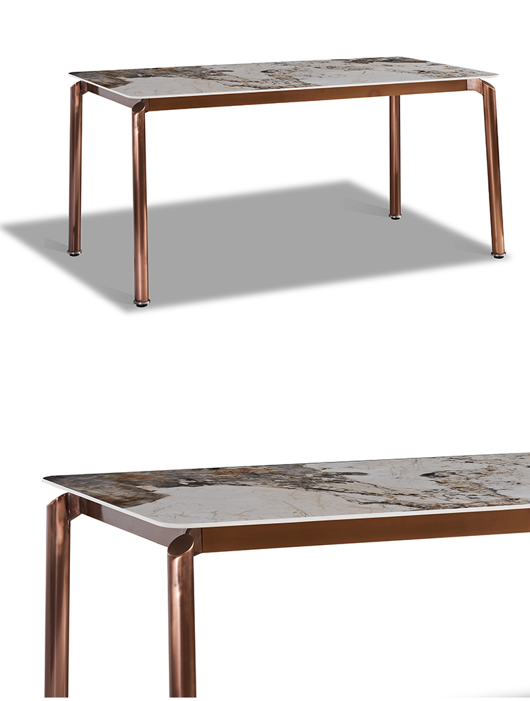 拉斐尔 轻奢 岩板+电镀不锈钢五金 1.6米餐桌