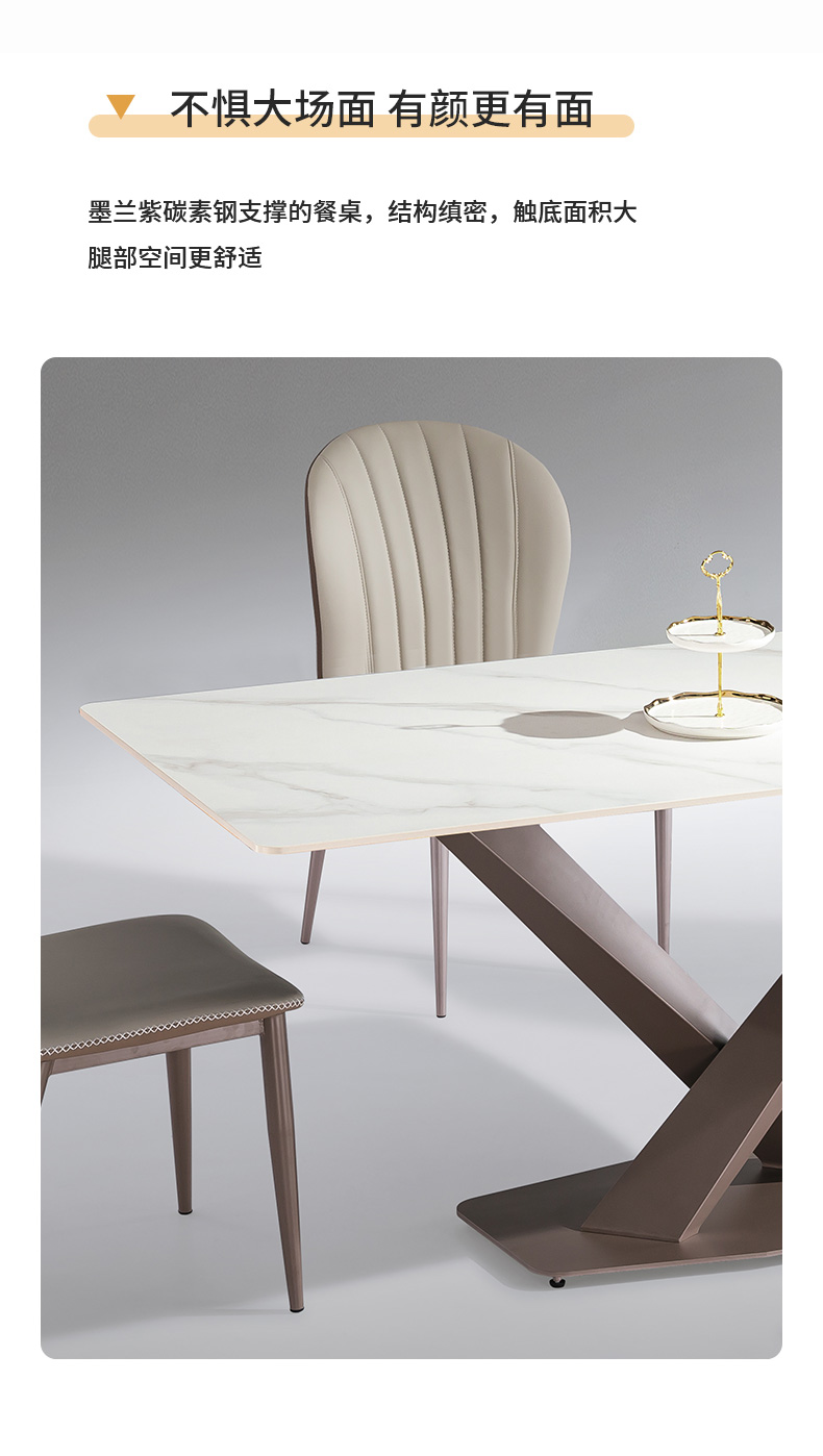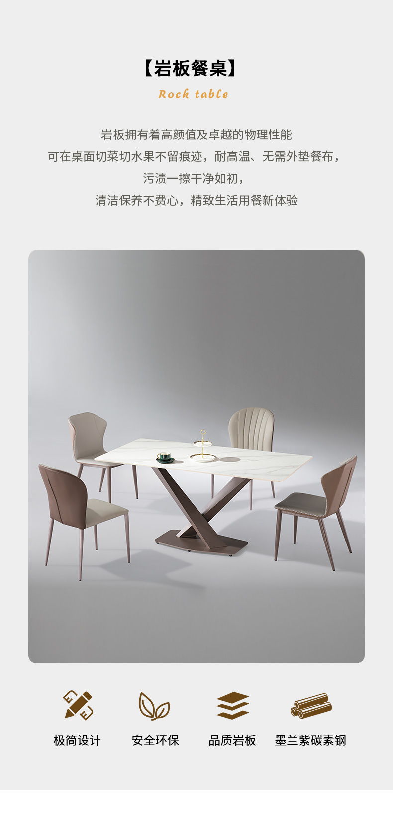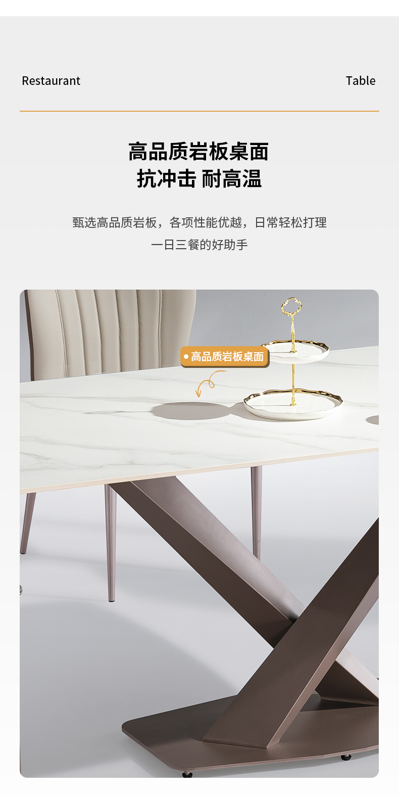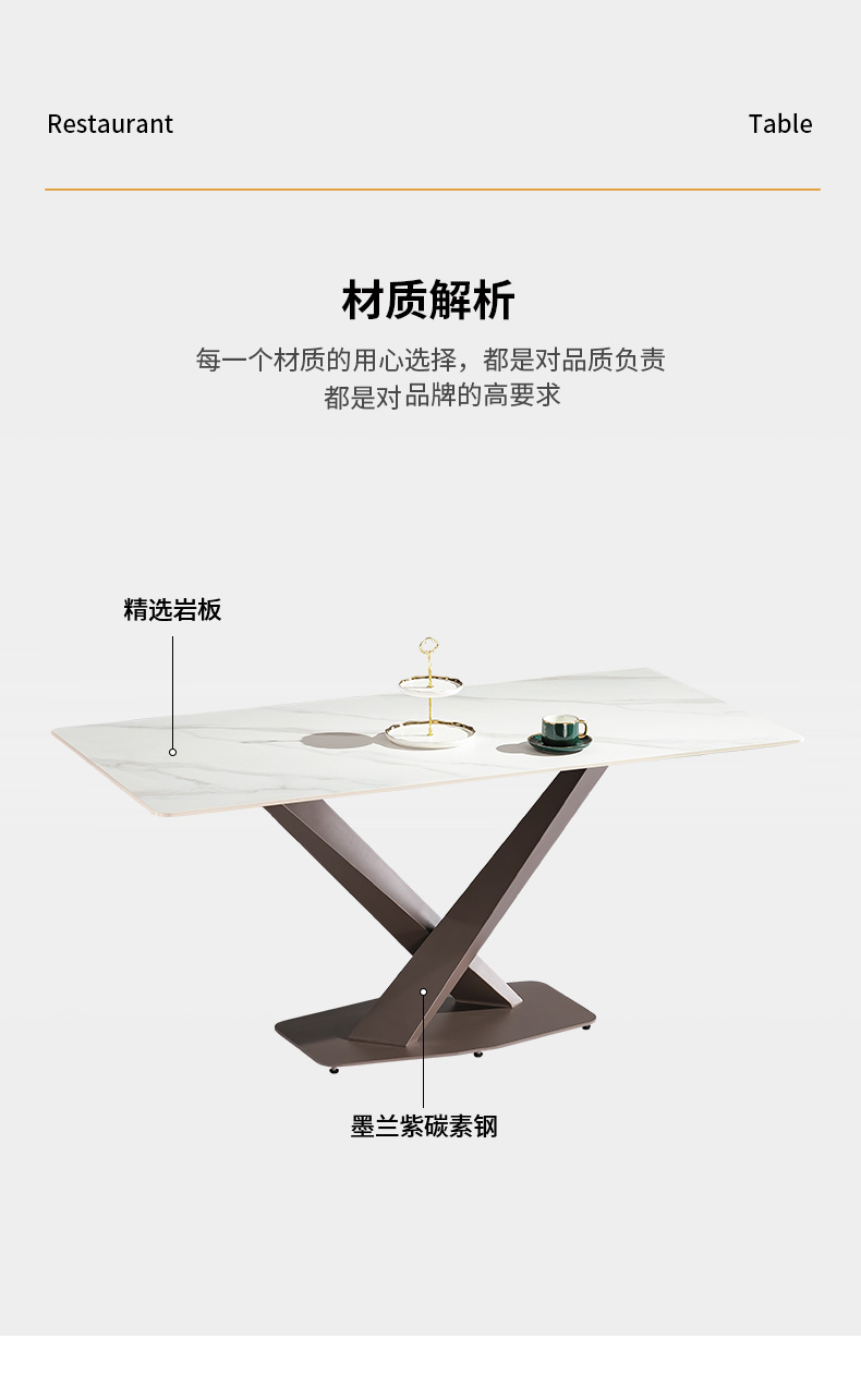 【套餐专享价】每屋优享系列 极简 桌面:岩板脚架:不锈钢钛金 1.4米餐桌(带底板)