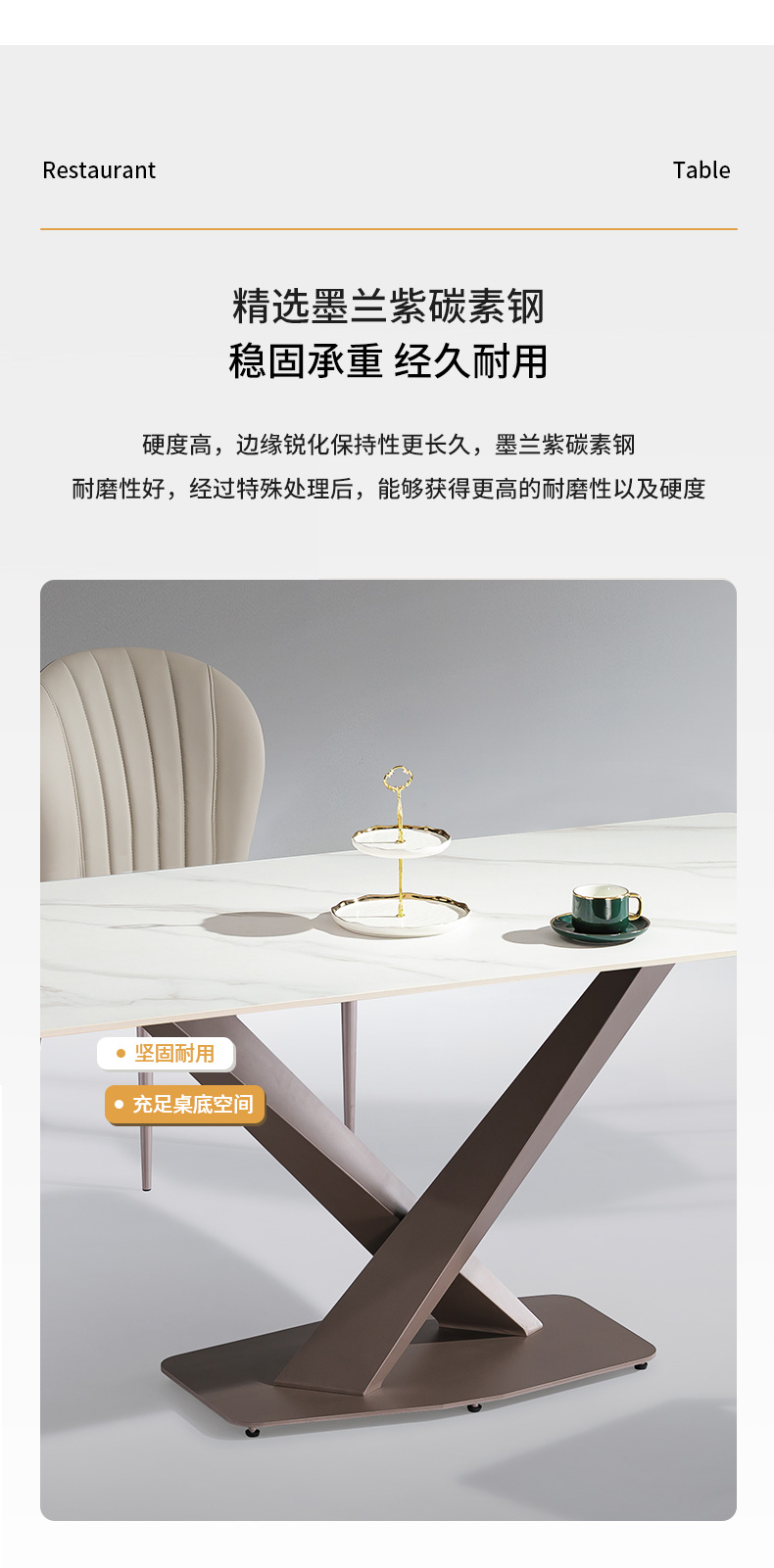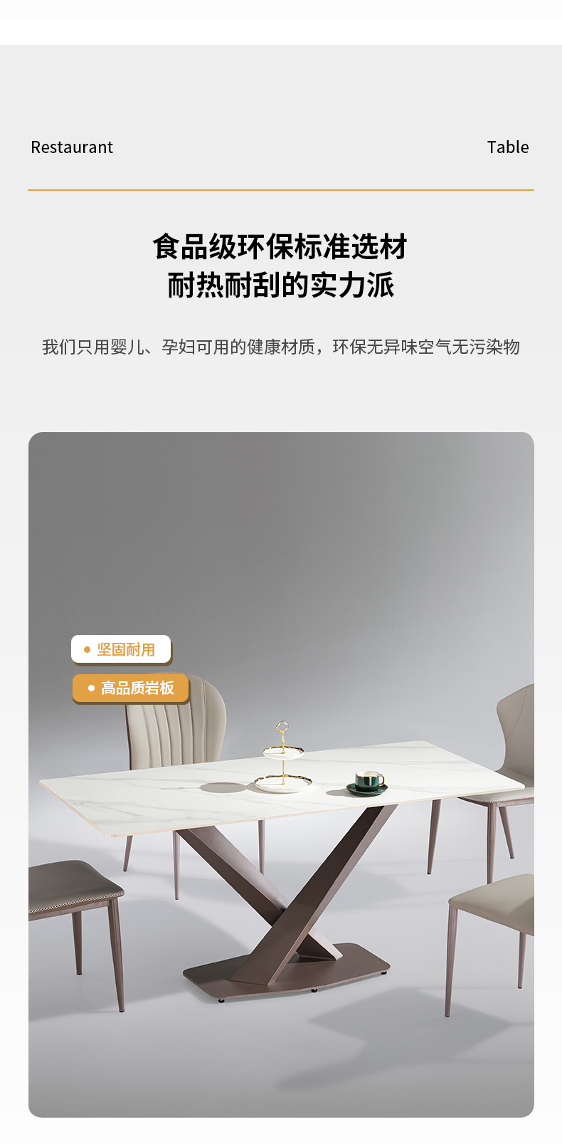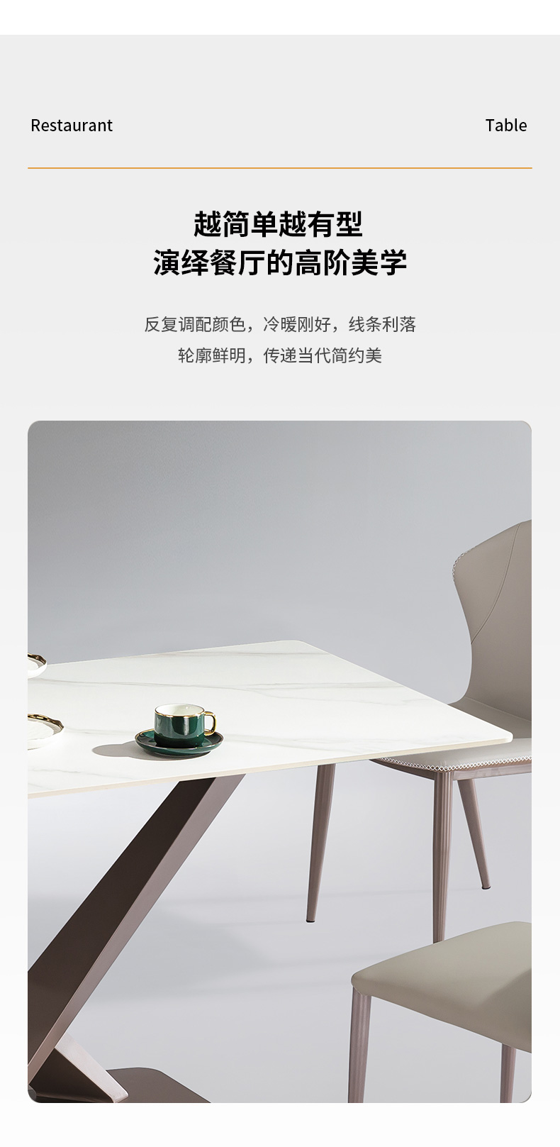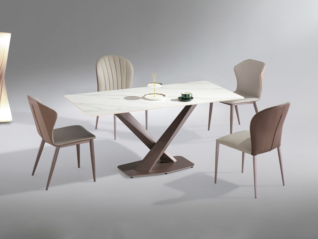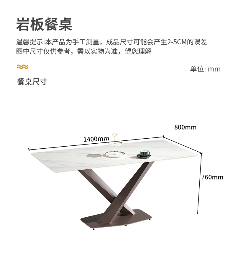 【套餐专享价】每屋优享系列 极简 桌面:岩板脚架:不锈钢钛金 1.4米餐桌(带底板)