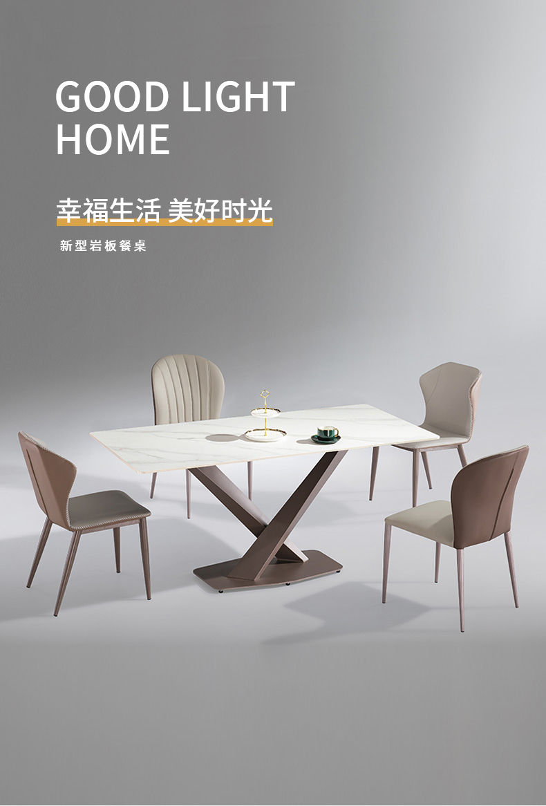 【套餐专享价】每屋优享系列 轻奢 桌面:岩板+底板脚架:不锈钢灰钛 1.4米餐桌¥1888