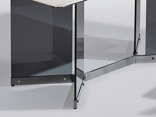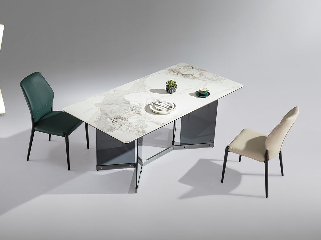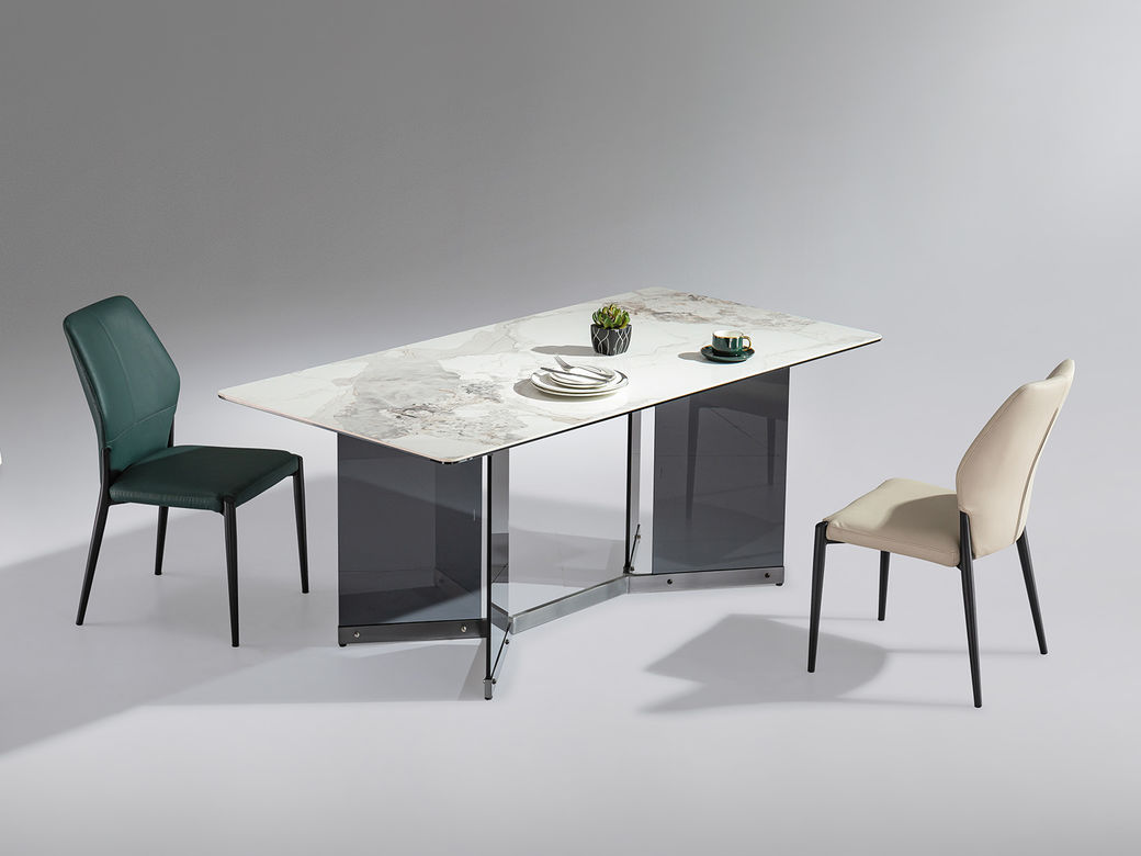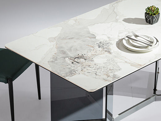 甄品家具 极简 桌面:岩板+底板脚架:不锈钢灰钛+钢化玻璃 1.4米餐桌