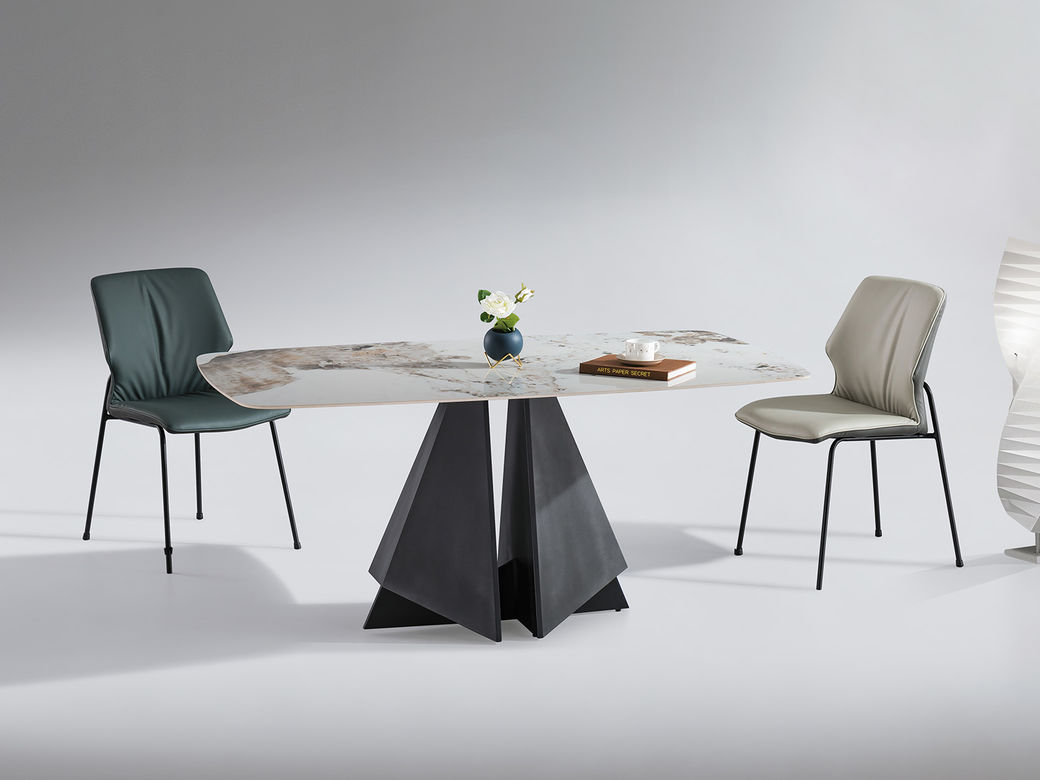 甄品家具 极简 桌面:岩板+底板脚架:黑砂碳素钢 1.4米餐桌¥948